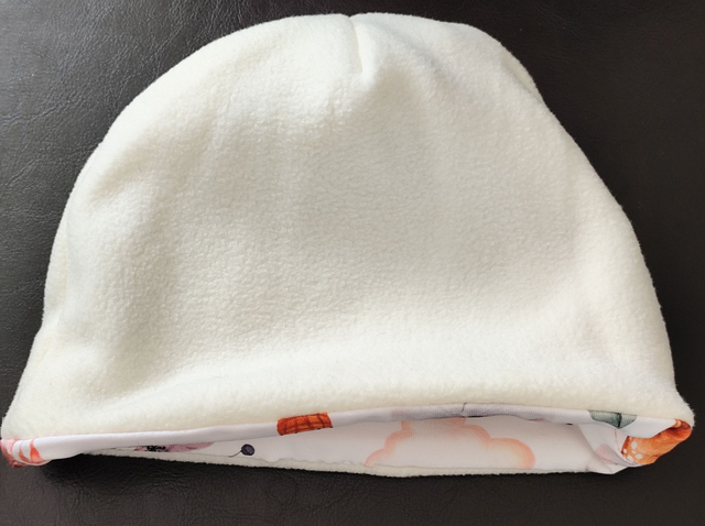 Ce bonnet réversible en jersey de coton et micropolaire sera l'allié des journées froides.