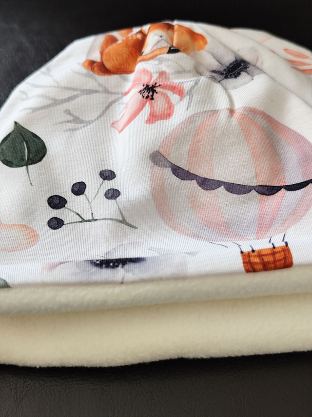 Bonnet réversible "Faon et montgolfière"